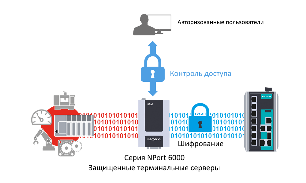 Наши решенияТерминальные серверы MOXA серии NPort 6000 – это идеальный выбор для защиты последовательных данных в Ethernet-сетях |
