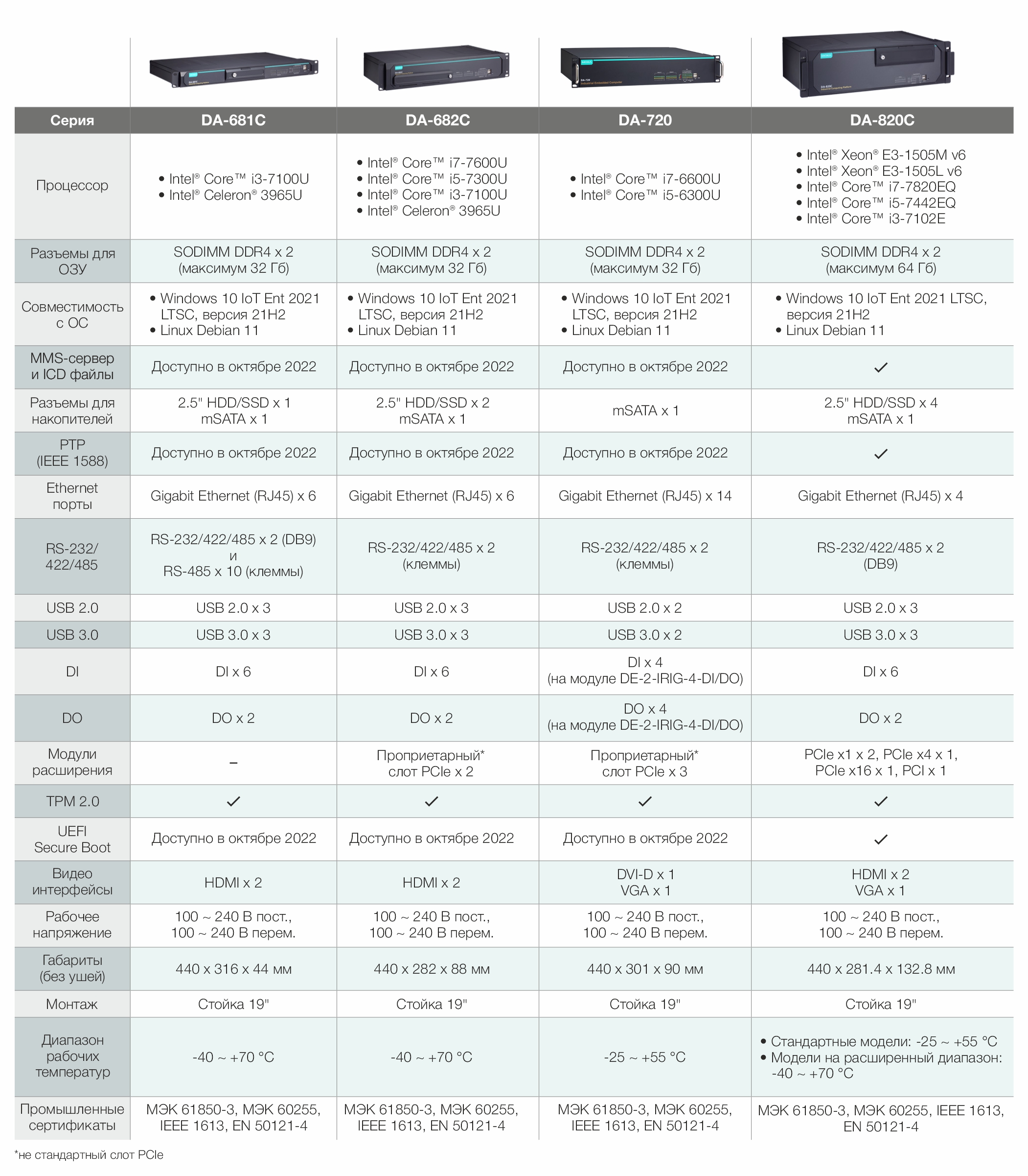 Сравнение компьютеров серии DA