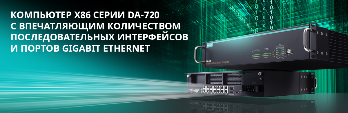 Главные особенности этих компьютеров – процессор 6 поколения Intel Skylake с частотой 2.6 ГГц, возможность установки в стандартную стойку 19” (высота 2U), поддержка модулей расширения с количеством портов до 22 x Gigabit Ethernet и 10 x RS-232/422/485, либо 14 x Gigabit Ethernet и 18 x RS-232/422/485. Благодаря перечисленным характеристикам, DA-720 идеально подходит для быстрой обработки больших объемов данных, преобразования протоколов и удаленного контроля систем автоматики на энергетических подстанциях, железной дороге, производстве и строительных площадках.