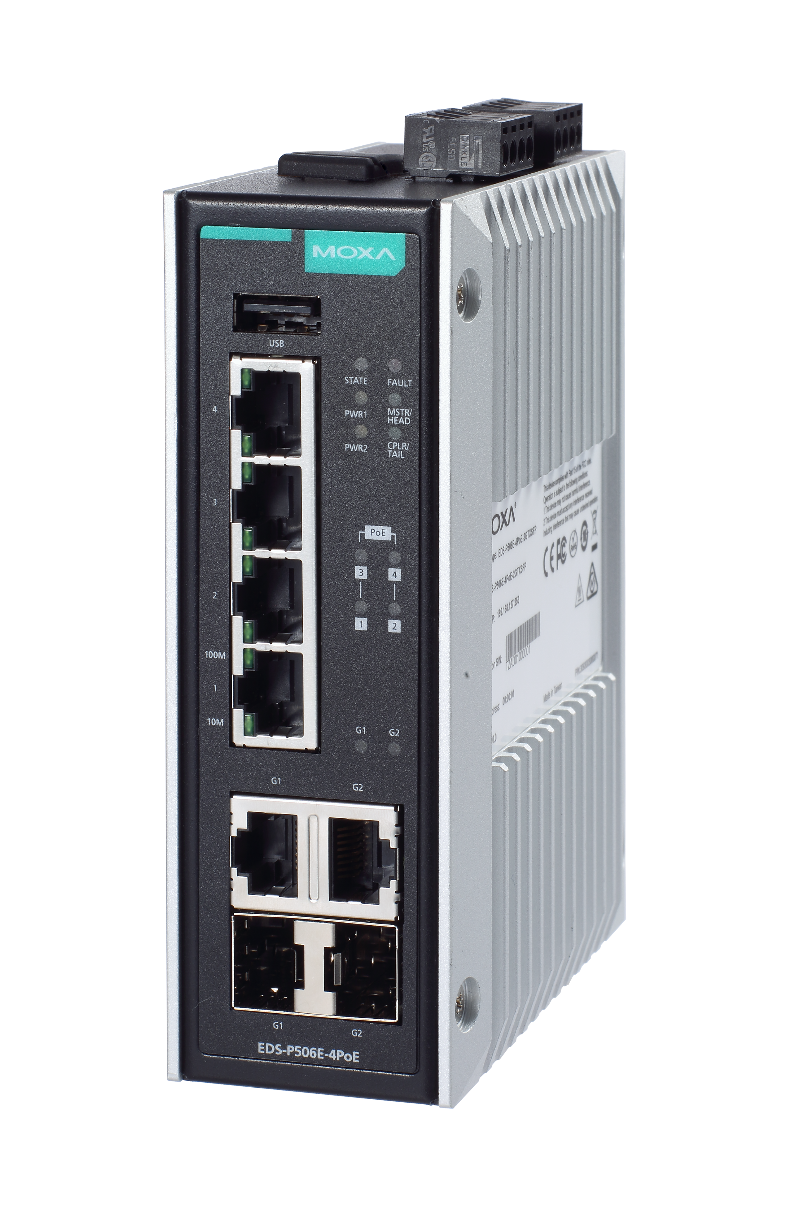 Промышленные коммутаторы EDS-P506E-4PoE, анонсированные в начале 2018 года, появились на складах Moxa в России. Новая серия 6-портовых коммутаторов Industrial Ethernet, оснащенных 4 портами PoE+ Ethernet и двумя Gigabit uplink-портами без PoE, является усовершенствованием серии EDS-P506A-4PoE, при этом основными изменениями стали: