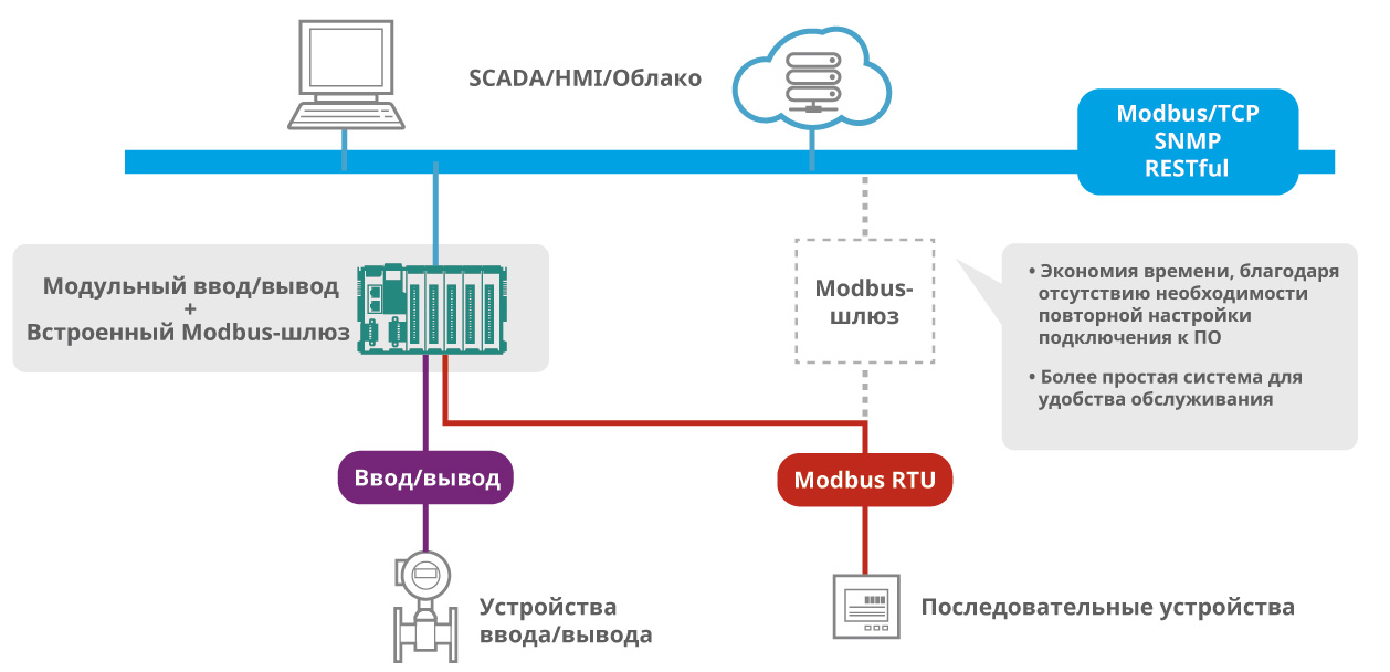 Простота системы, благодаря встроенному Modbus-шлюзу
