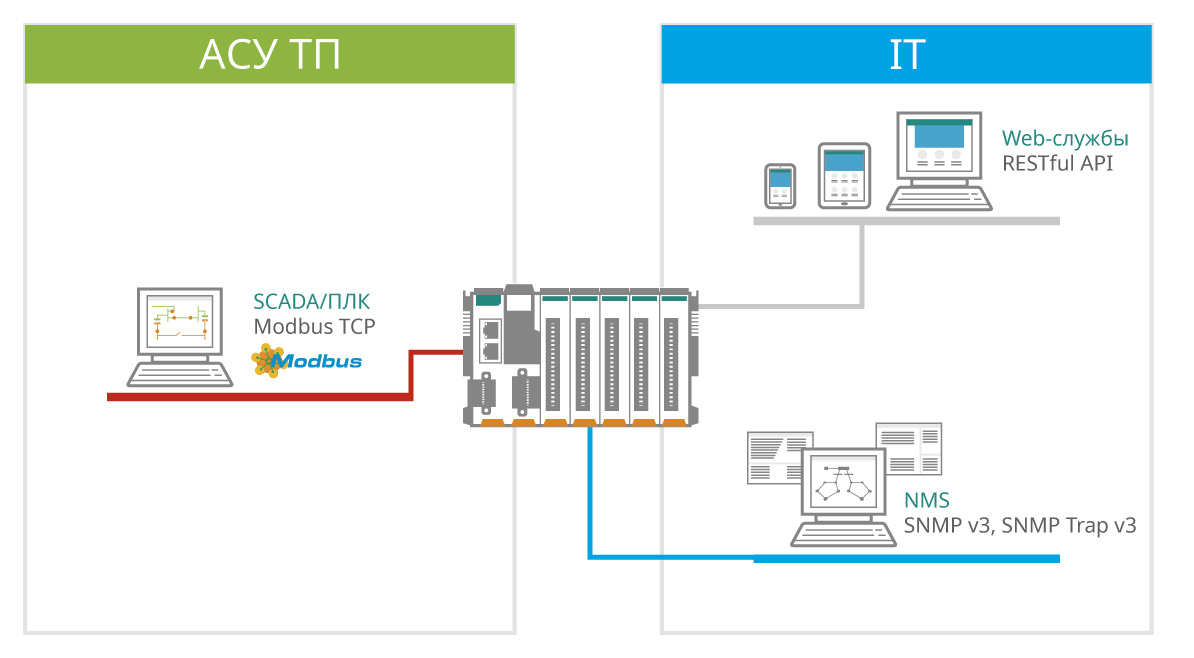 Поддержка нескольких протоколов IT/АСУ ТП на одном устройстве