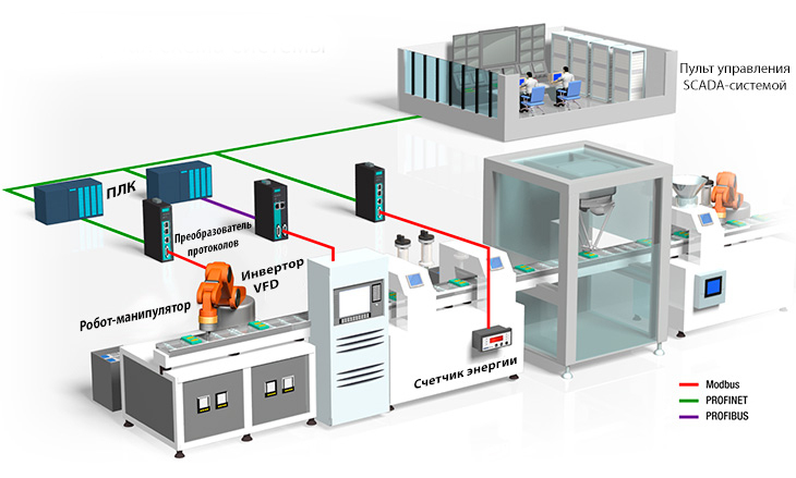 СкачатьРост популярности концепции Индустрии 4.0 (Industry 4.0) дал заводам новые возможности для модернизации своих систем автоматизации и внедрения систем интеллектуального производства. Однако указанные модернизации сопряжены с проблемами, например, необходимостью подключения большого количества Modbus-устройств к системам управления сетью, таким как ПЛК и SCADA-системы, которые обычно используют протоколы PROFINET или PROFBUS. Чтобы преодолеть несовместимость между протоколами, шлюзы протоколов обеспечивают бесшовное преобразование данных.