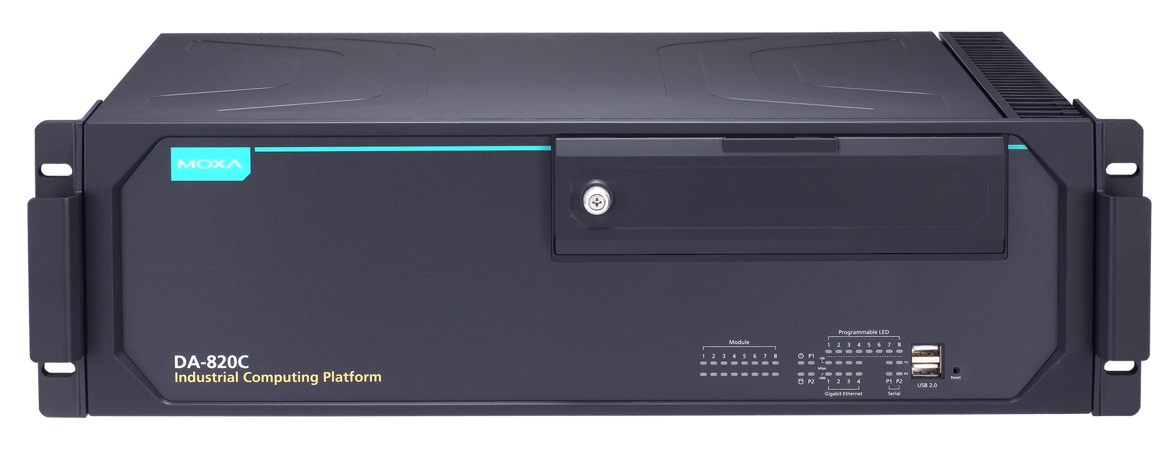 Модель DA-820C была выбрана неслучайно – это флагманский компьютер Moxa нового поколения. Высокопроизводительный процессор Intel Xeon, безвентиляторное исполнение, теплоотвод на боковые стороны, температура эксплуатации от -40 до +70°C, а также соответствие стандартам IEC 61850-3, IEEE 1613 и EN 50121-4 позволяют применять данный компьютер в качестве сервера в самых жестких условиях эксплуатации.