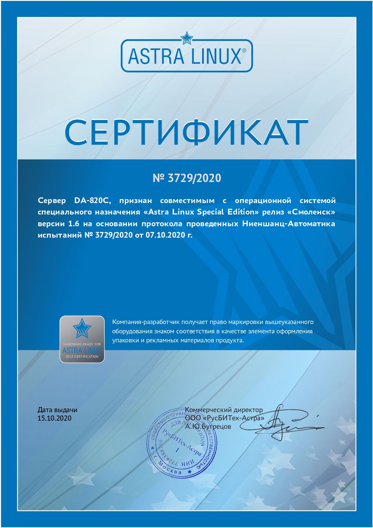 Ниеншанц-Автоматика, официальный дистрибьютор Moxa на территории РФ, рада сообщить, что компьютер DA-820C стал первым из компьютеров Moxa, получивший сертификат совместимости с операционной системой специального назначения «Astra Linux Special Edition», релиз «Смоленск», версия 1.6.