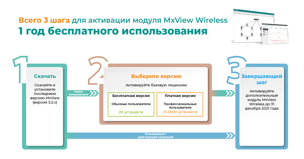Не забудьте активировать модуль MXview Wireless до конца 2021 года и пользуйтесь им бесплатно в течение целого года.