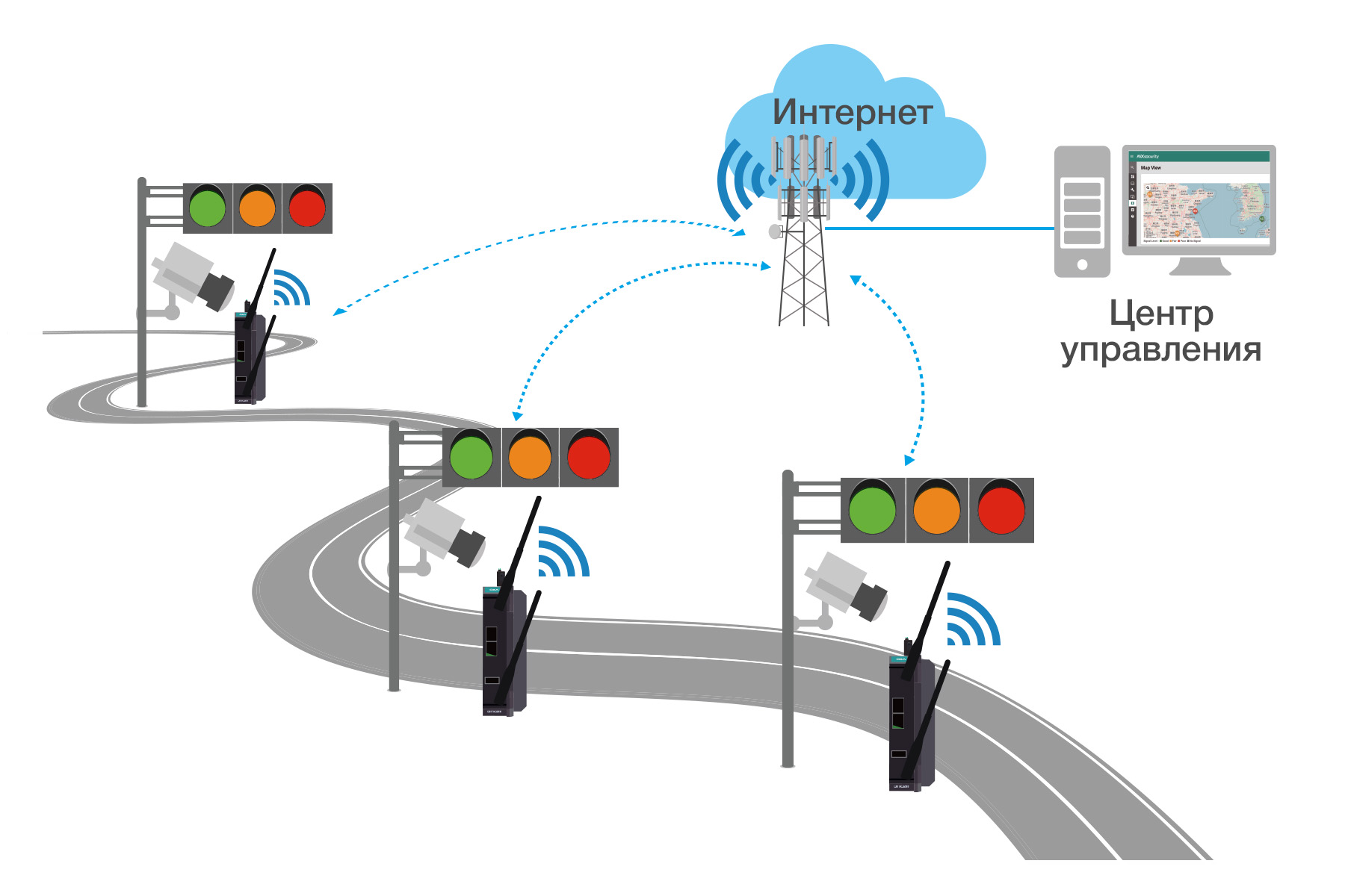 OnCell G4302 отлично подходит для управления светофорами. Промышленное исполнение, широкий температурный диапазон, наличие сертификатов E1 eMARK и NEMA TS2 – все эти аспекты делают модем этой серии максимально подходящим для сбора и передачи данных по сотовой связи в транспортной отрасли.