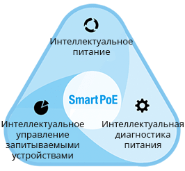 - Технология SmartPoE для простой настройки, контроля и обслуживания подключенных запитываемых устройств