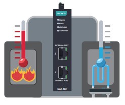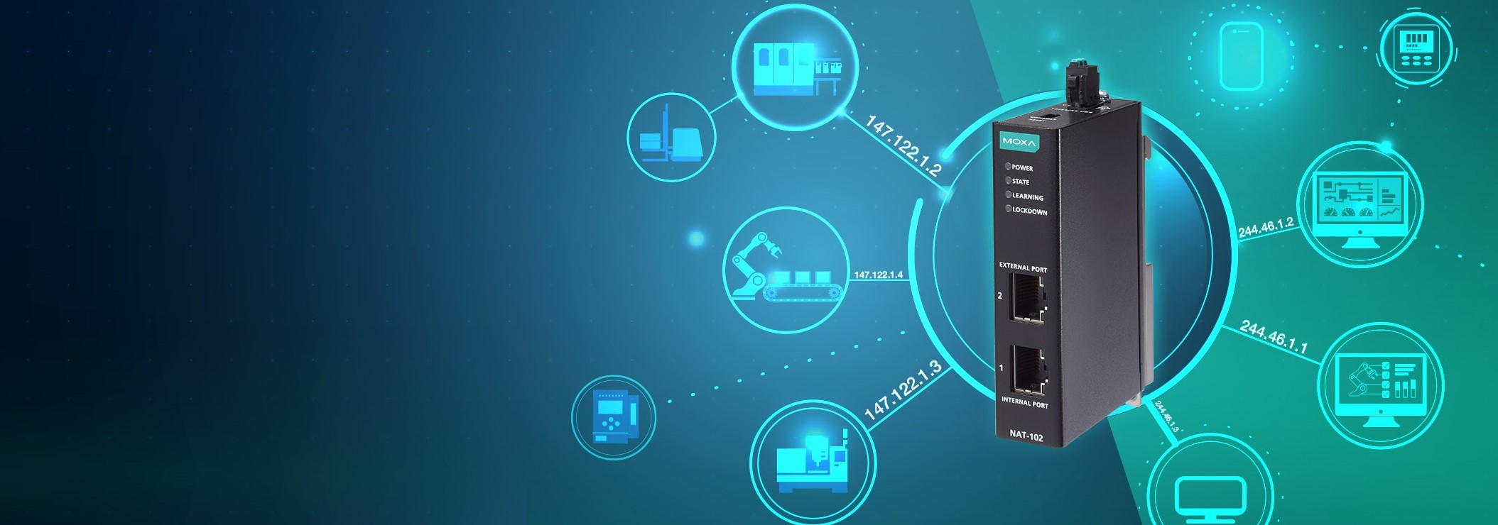 Серия промышленных устройств NAT-102 упрощает конфигурацию IP-адресов устройств в существующей сетевой инфраструктуре и обеспечивает базовую кибербезопасность в средах автоматизации производства.