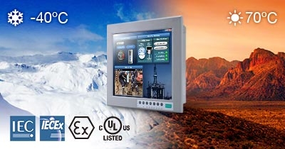 Компьютер EXPC-1519 предназначен для работы в диапазоне температур от -40 до 70°C. Безвентиляторный корпус устройства обеспечивает эффективный теплоотвод, что идеально подходит для использования в условиях повышенных температур, например, на нефтяных вышках. В очень холодных условиях, вплоть до -40°C, компьютер может запускаться всего за 3 минуты без использования устройств подогрева. EXPC-1519 сертифицирован по промышленным стандартам Class 1 Division 2, ATEX Zone 2, IECEx и NEMA 4X/IP66 и гарантирует максимальную защиту в жестких условиях эксплуатации.