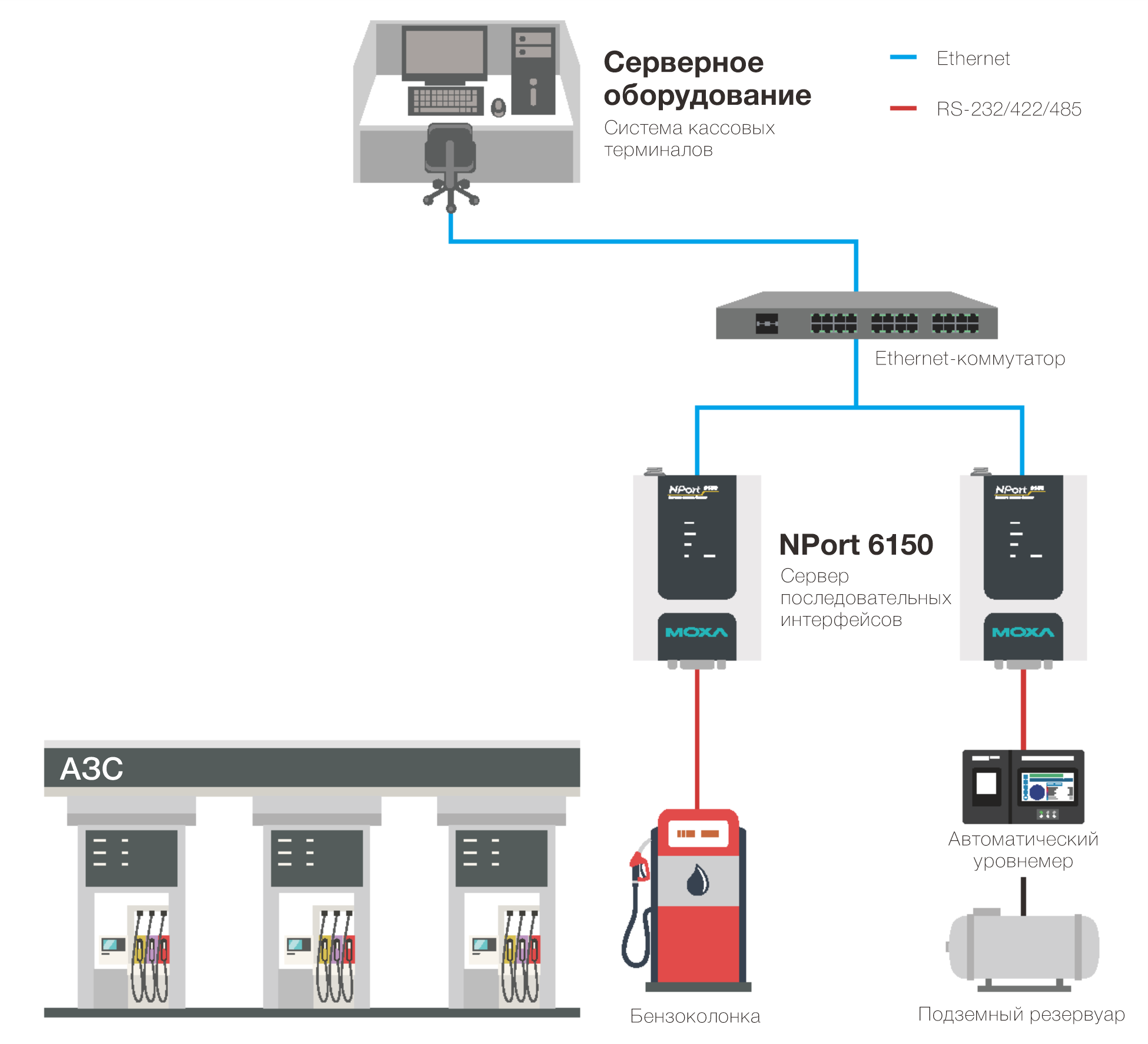 - защитить данные, которые передаются между бензоколонками, автоматическими уровнемерами в резервуарах и серверным оборудованием станции;