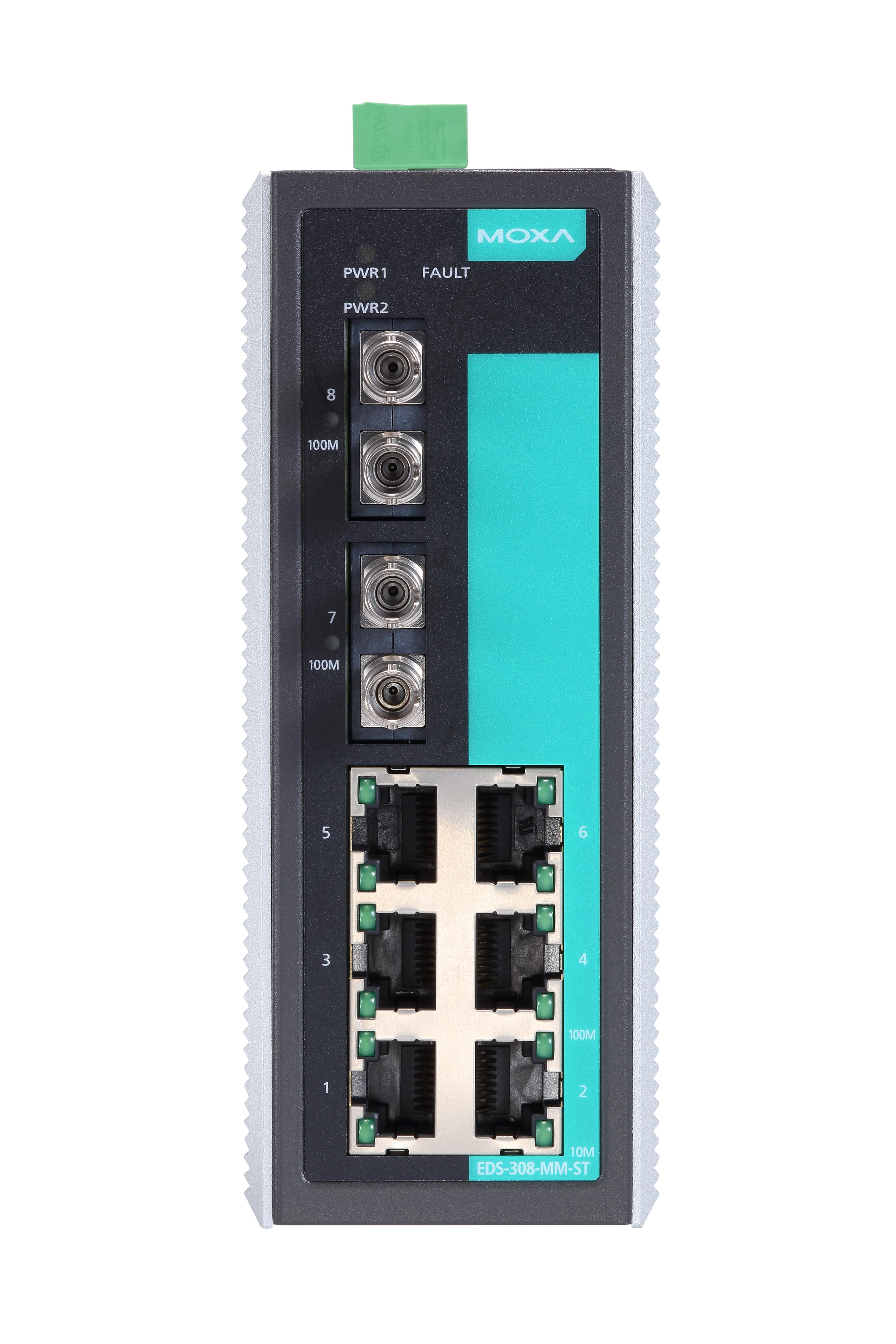 Коммутатор 6 x 10/100BaseTX, 2 x 100BaseFX (многомодовое оптоволокно), с разъемом ST, с расширенным диапазоном температур