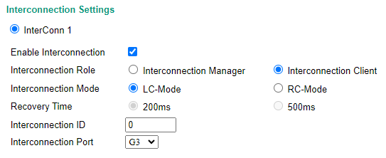 Для коммутаторов с ролью Interconnection Client задаются аналогичные настройки, кроме параметра Interconnection Role, которому устанавливается значение Interconnection Client: