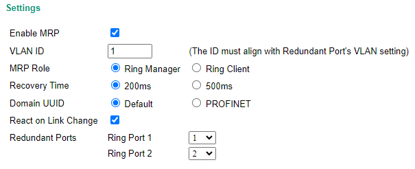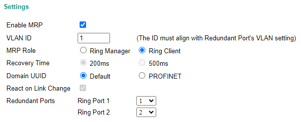 - Для параметра MRP Role устанавливается значение Ring Master.
