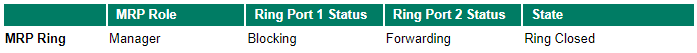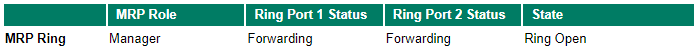 Если в кольце происходит обрыв, у коммутатора с ролью MRM статус меняется на Ring Open, оба порта имеют статус Forwarding.