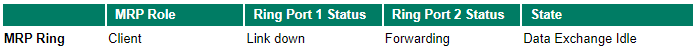 А у коммутатора с ролью MRC, у которого на порте произошел обрыв, статус меняется на Data Exchange Idle, один из портов имеет статус Link Down.