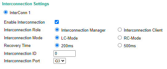 - Interconnection Mode - устанавливается LC-Mode или RC-Mode, необходимо, чтобы у всех коммутаторов, которые участвуют в Interconnection, был выбран один и тот же режим.