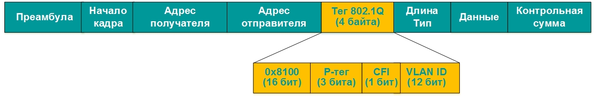 На канальном уровне маркировка пакетов происходит в соответствии со стандартом 802.1p. Поле CoS занимает 3 бита в 4-байтовом заголовке 802.1Q, который содержит p-тег, определяющий приоритет и идентификатор VLAN. Всего может быть установлено до 8 классов обслуживания данных, описанных в стандарте 802.1D. Исходя из всего этого, необходимым условием маркировки CoS является тегирование трафика по технологии VLAN. Такая маркировка QoS возможно только в пределах локальной сети, так как при прохождении пакетов сквозь маршрутизатор VLAN теги удаляются.