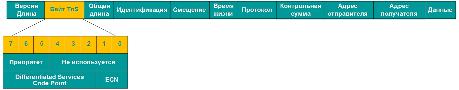 - Маркировка на 3 уровне - ToS (Type of Service) /DSCP (Differentiated Services Code Point)