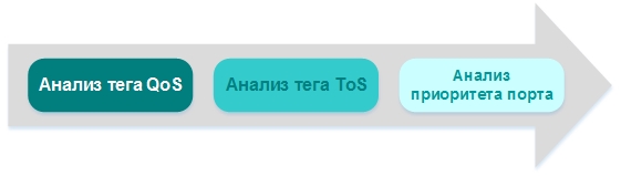 Входящий трафик по умолчанию анализируется сначала на идентификатор ToS, затем CoS, последним проверяется приоритет порта (Port Priority).