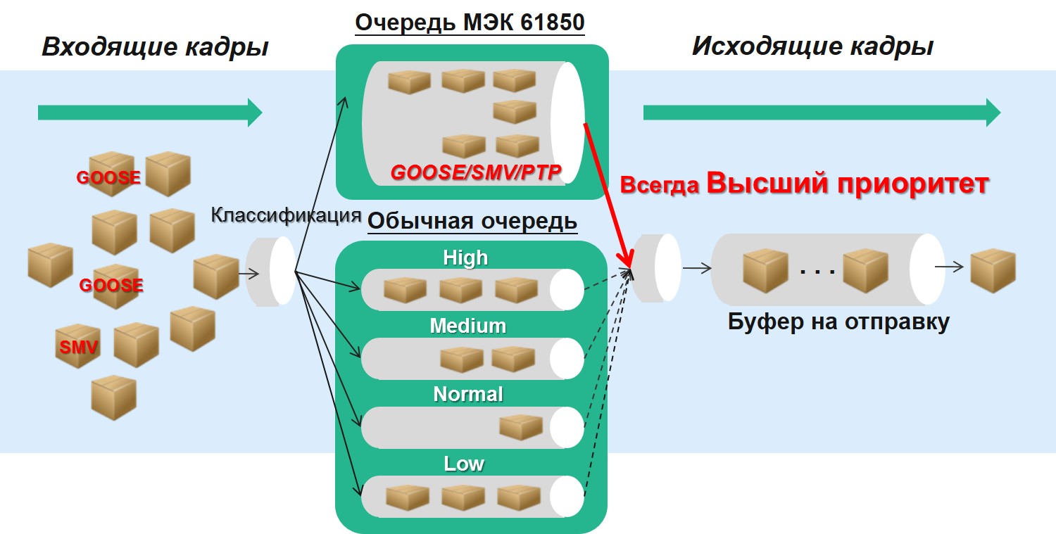 Уровень приоритета пакетов внутри очереди МЭК 61850: High, Medium, Normal, Low