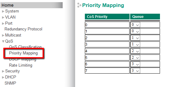 Если входящий трафик не промаркирован согласно ToS или CoS, но есть необходимость в разделении уровня обслуживания между потоками трафика, то можно использовать функцию Port Priority. Важно помнить, что при этом исходящий трафик не будет маркироваться.