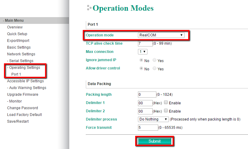 Устройства NPort могут работать в различных режимах в зависимости от поставленной задачи: