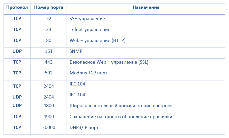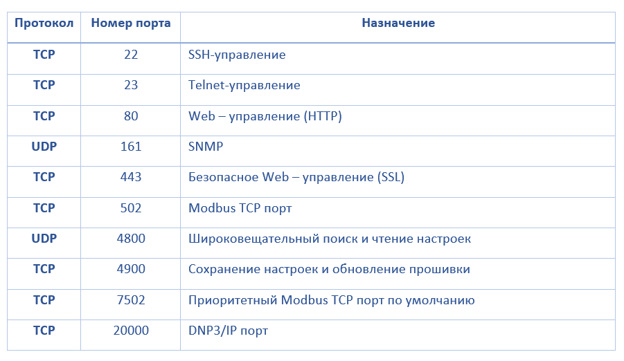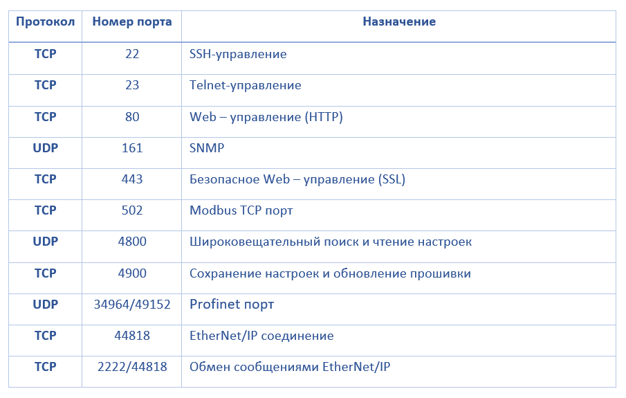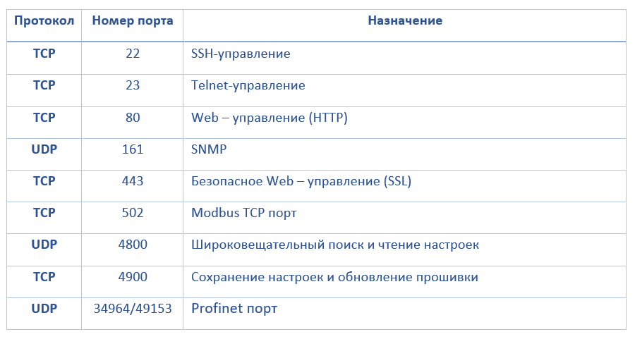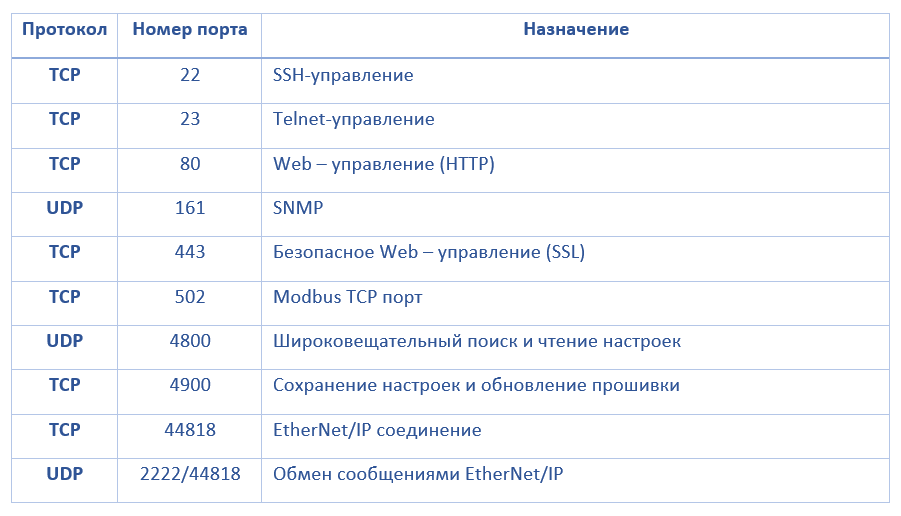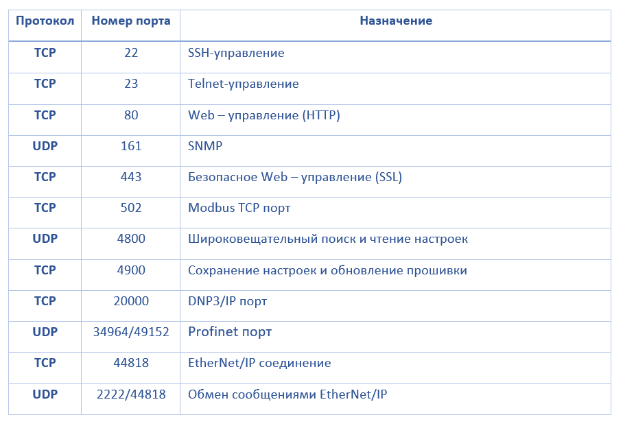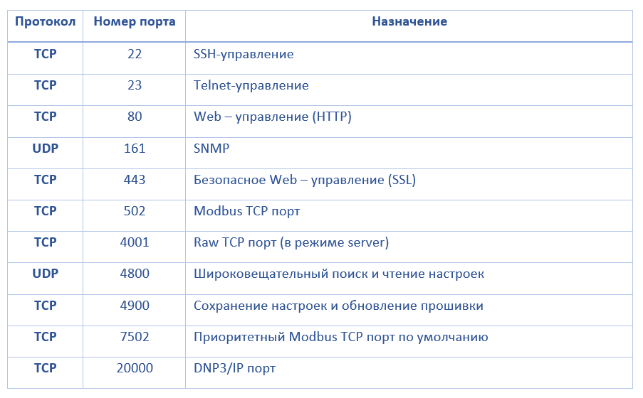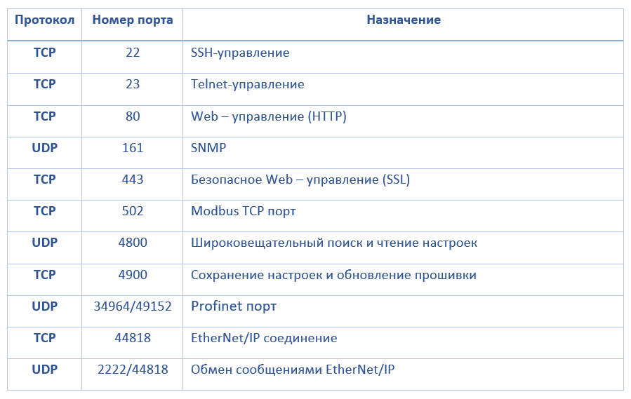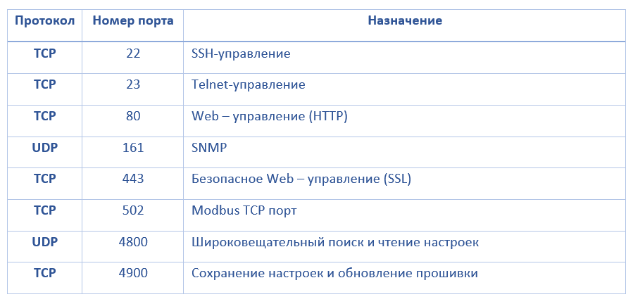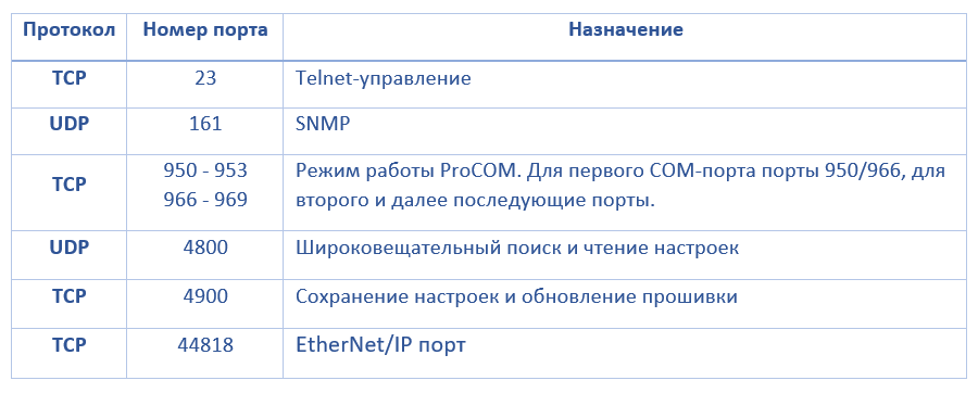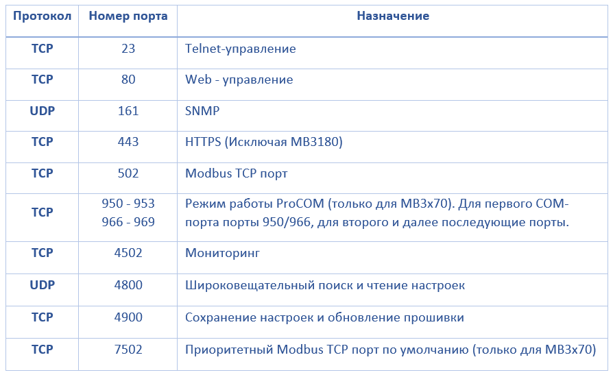 TCP/UDP порты устройств MGate