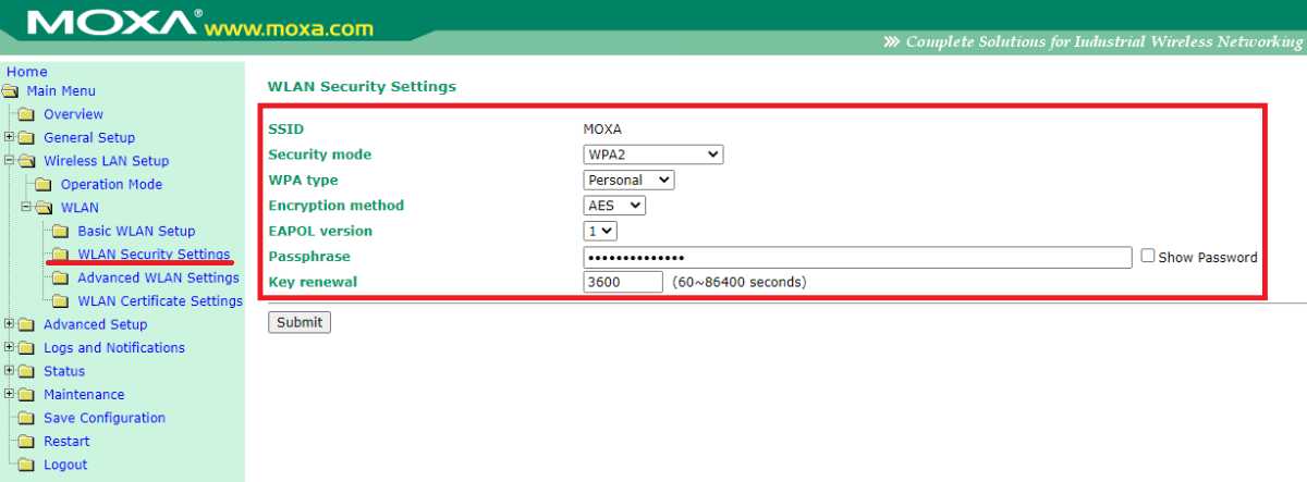 Перейдите в раздел WLAN Security Settings, нажмите редактировать настройки (Edit) и задайте параметры безопасности для подключения клиентов к беспроводной сети (на точках доступа с одинаковым SSID данные параметры также должны совпадать, чтобы клиенты могли переключаться между точками доступа):